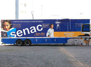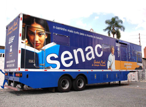 A partir de agora o Senac Paraná chegará ainda mais perto da população paranaense. A Instituição investiu na Unidade Móvel - uma carreta de 14 metros de comprimento e 2,76 metros de altura e que levará educação profissional para locais que não possuem espaço físico para atividades como cursos e palestras. Esta unidade tem como foco ações nas áreas de Informática e Gestão, porém a sua estrutura possibilita a transformação do espaço em outros ambientes, como sala de reuniões e de palestras. Além disto, a plataforma é adaptada para pessoas com deficiência, proporcionando a inclusão social e educacional. O Senac irá investir em mais duas unidades móveis para incorporar a frota ainda neste ano. Este empreendimento foi desenvolvido pelo Senai Distrito Federal - instituição do Sistema S comprometida com a educação profissional e com o avanço da tecnologia. A Coordenadora de Serviços Industriais do Senai Distrito Federal, Célia Regina Alberti Leitão, explica que a construção de uma unidade móvel incorpora várias etapas educacionais, como marcenaria, instalações prediais, soldagem, informática. "Todo o processo de montagem de uma unidade móvel é um processo educacional. É a aplicação dos conhecimentos na execução dos trabalhos", diz Célia.